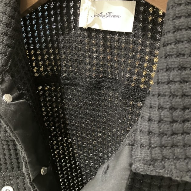 こんなおもしろい生地で、カタチがいわゆるGジャン。こんなタイプ他には無いですね!