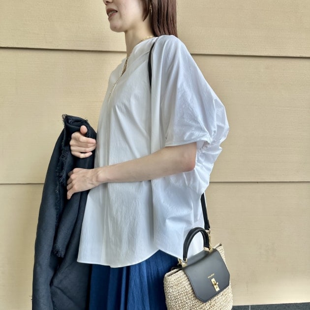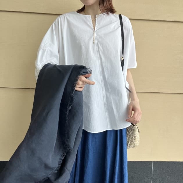 肘までしっかり着丈があり、季節の変わり目にピッタリです。