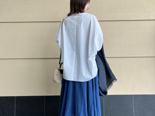 このようにあえてボリュームのあるスカートと合わせても◎