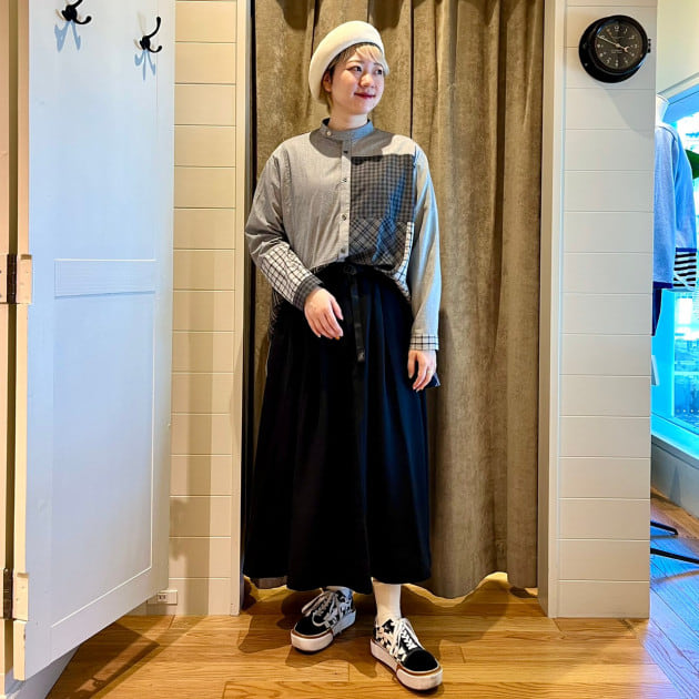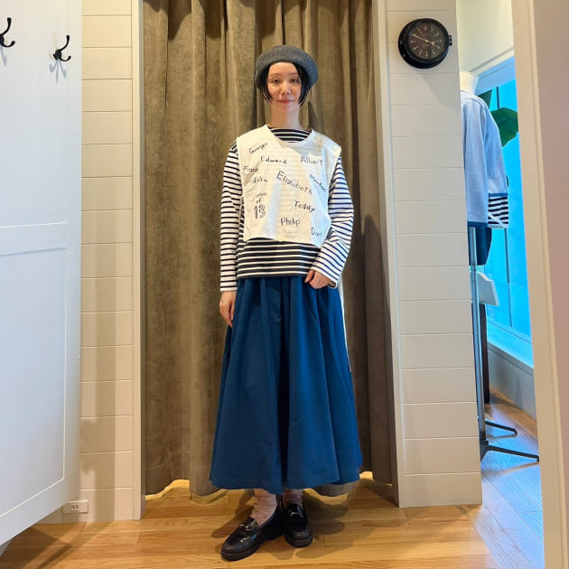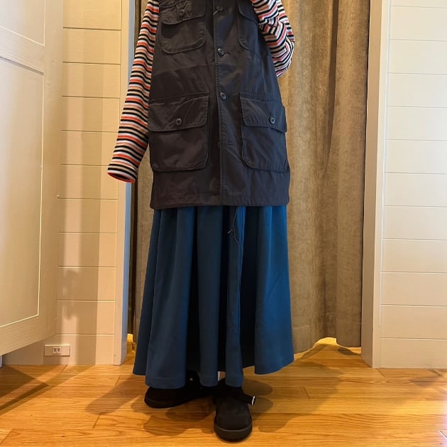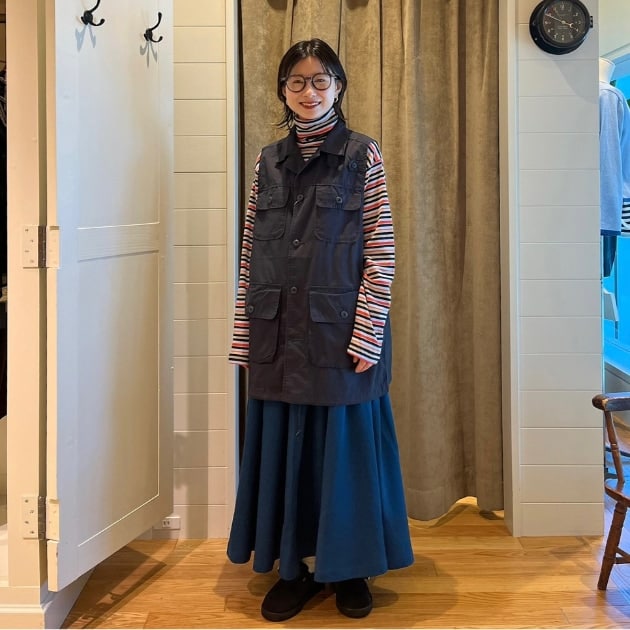 今週はGRAMICCI × BEAMS BOY別注ギャザースカート23FWを着回し!こちらは本当に万能スカートです◎トップスはモノトーンボーダーで締めてメモリープリントが楽しいベストを合わせてみました^^