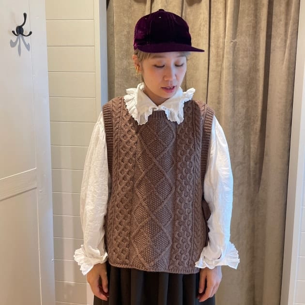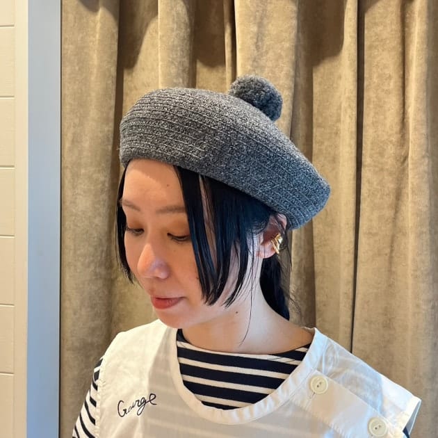 素材感や色味が目を引くキャップで外しました。