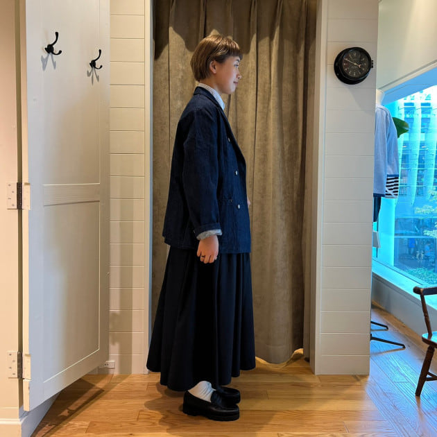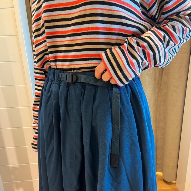 さぁ!やってまいりました! 今回は大人気!らくちんスカートを着回しです! こちらの《GRAMICCI(グラミチ)》別注スカート!なにが””らくちん””かと言いますと!ウエスト周りがテープベルトで調整できる仕様となっております! また、綺麗なAラインなのでこちらも””らくちん””ポイントです! 丈感も長すぎずで◎! 少しカジュアルな印象ですが、ジャケットを合わせるとカチッとまとまります〜♪ それでは今日も良い1日を!