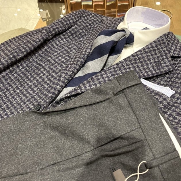 ウールがブレンドされているネクタイを合わせれば、さらにマッチしますね。