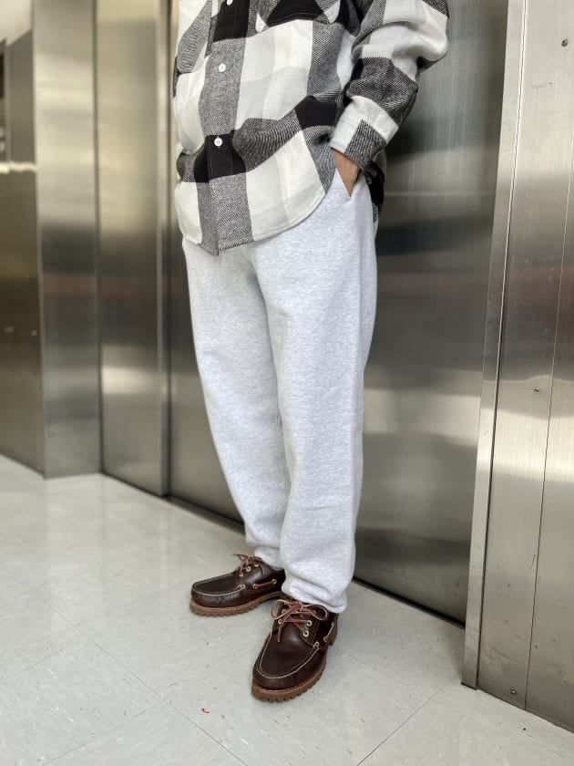 グレーのスウェットパンツの印象は、パジャマや部屋着が連想されると思います。