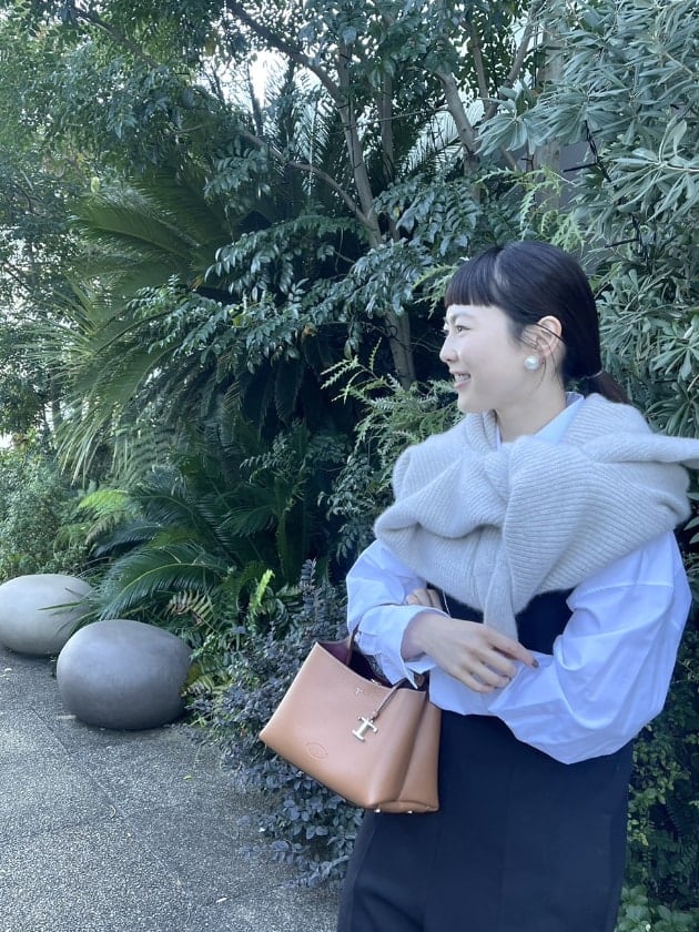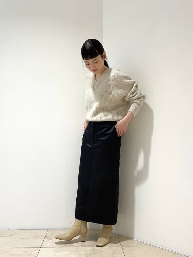 少し、後ろに抜いて着ると立体感が出て、より素敵です。