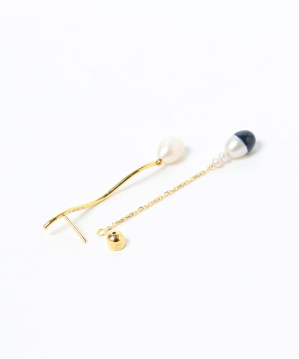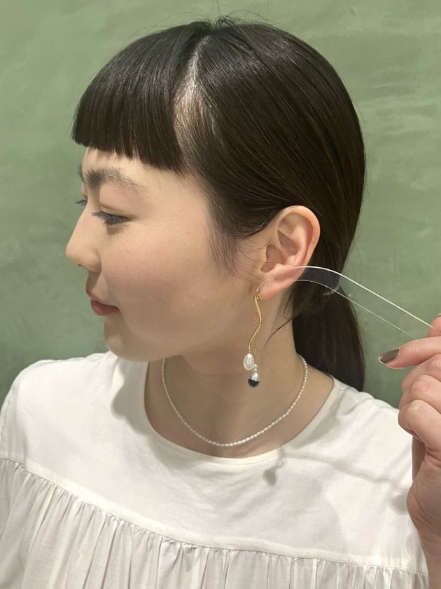 耳の後ろで揺れ動くパールには、ネイビーのレジンを使用し、ジュエリーでは珍しい異素材のミックス。