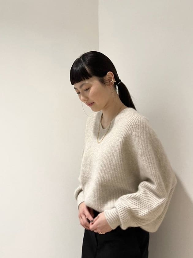 ネックレスと相性の良いVネックのニットも、新作入荷しています。