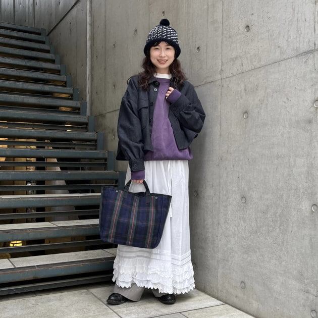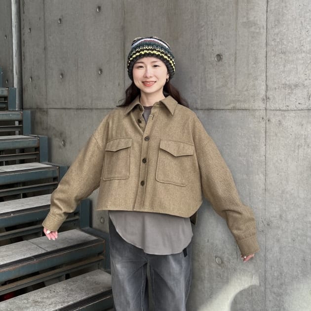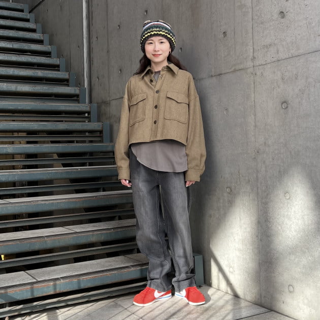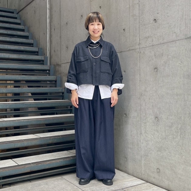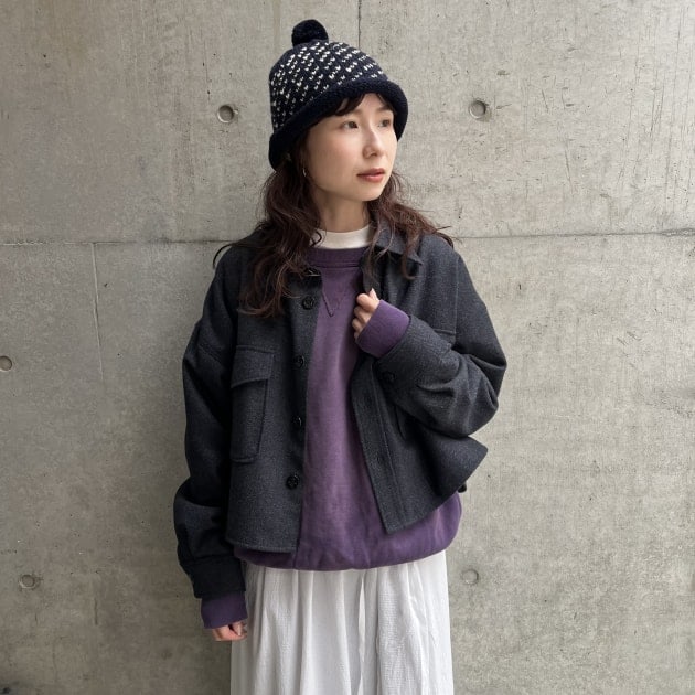 短丈なのでワイドなボトムス、スカートと相性抜群♪