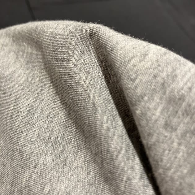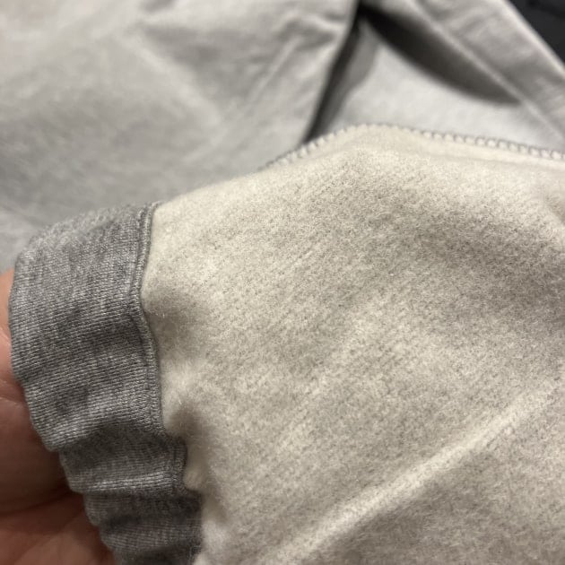 裏毛は一般的に18ゲージから22ゲージのものが多いです。こちらのスウェットは36ゲージ。その編み機は日本に2〜3台のみのようです。それはそれは希少な生地です。