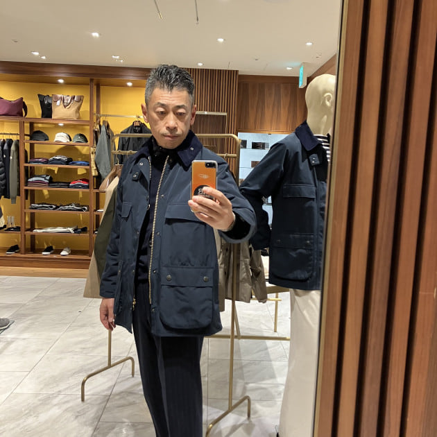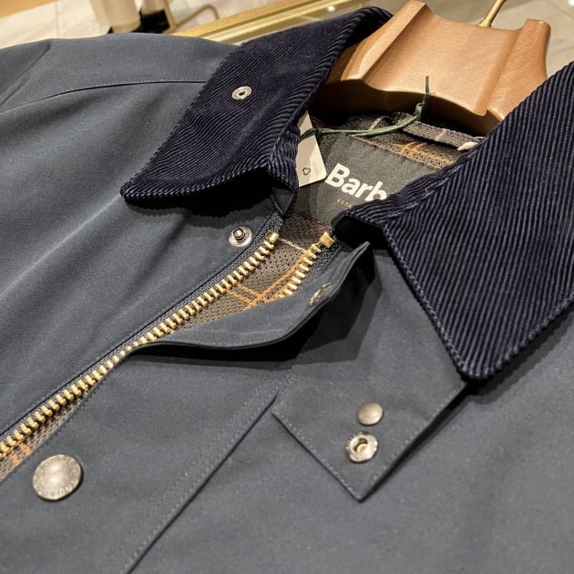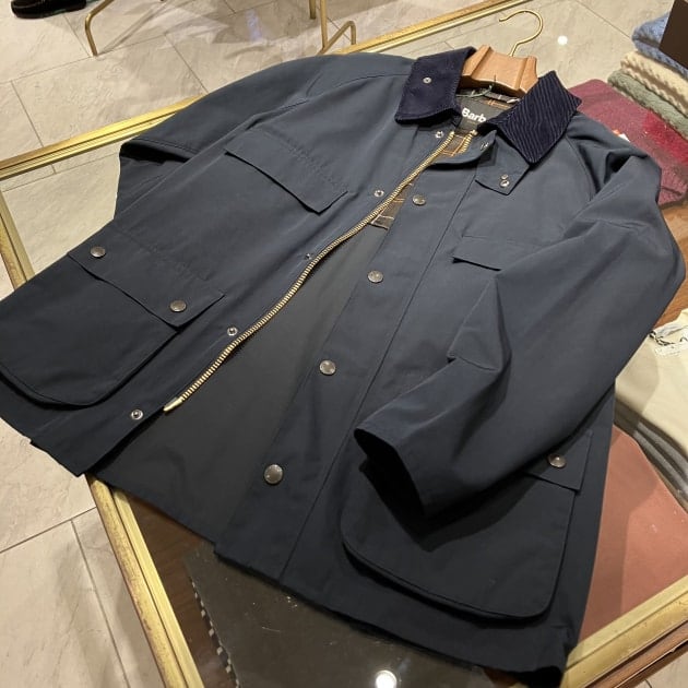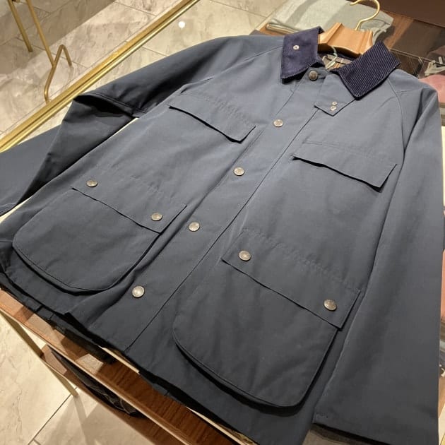 〈Barbour〉はオリーブグリーンの色のイメージがありますが、「ネイビー」もなかなかいい感じでございますよ。
