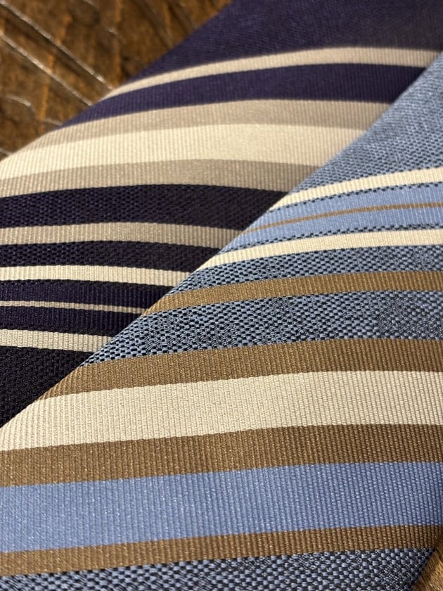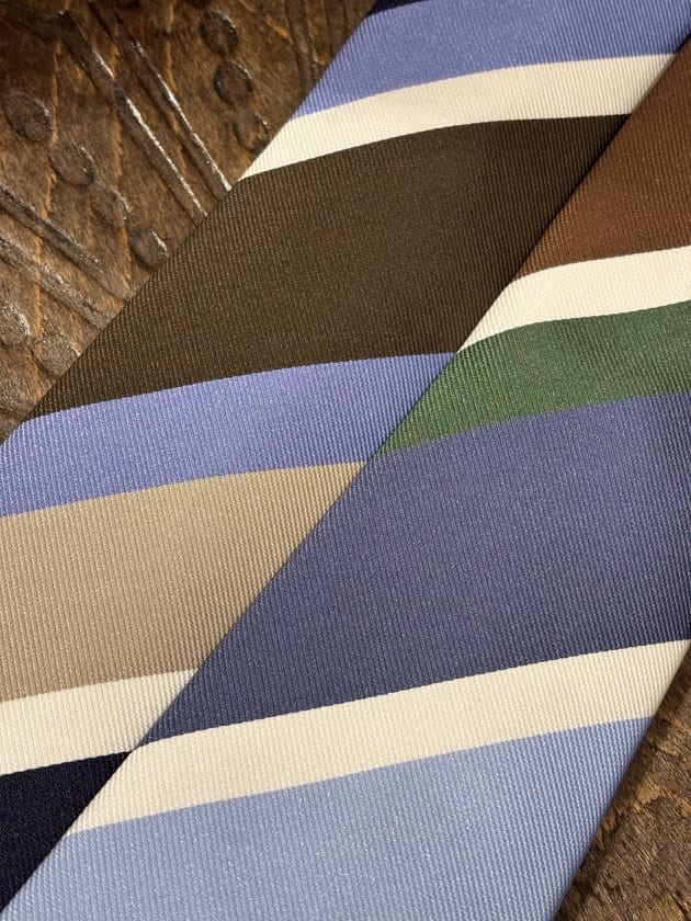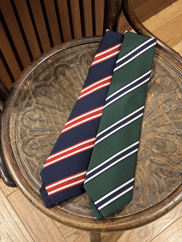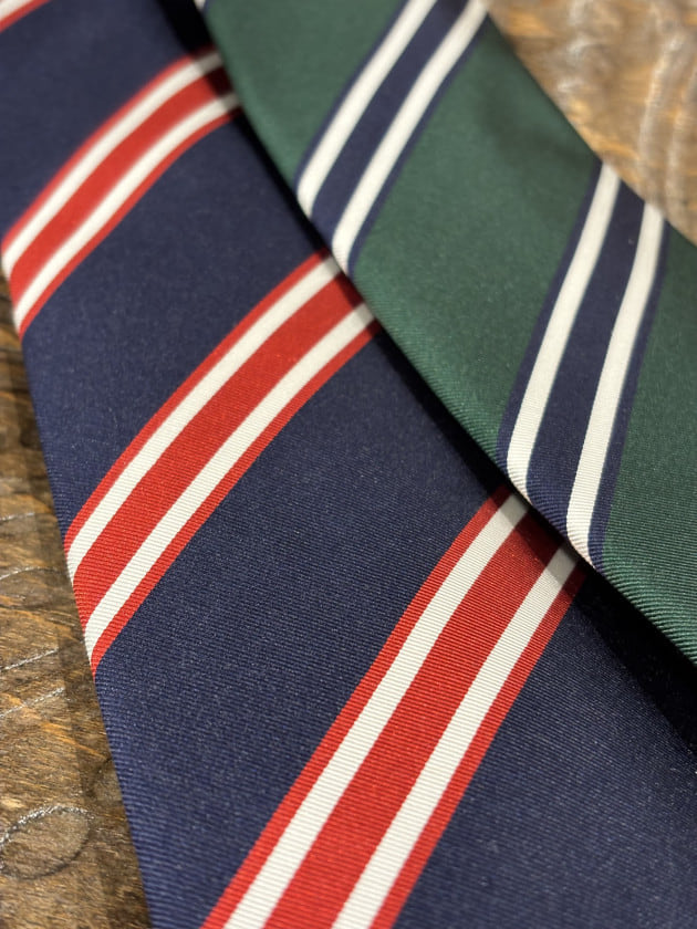まずは大柄のレジメンタルパターン。爽やかな春夏らしい配色で2色展開。