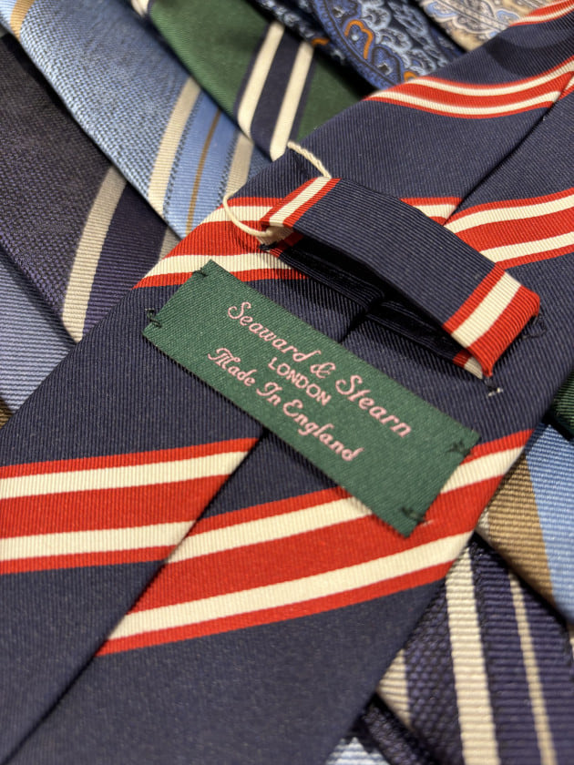 本日のご紹介は、新入荷のネクタイです。そろそろ春夏スーツに衣替えという方も多いと思いますが、ネクタイは新作を合わせてみてはいかがでしょうか。<Seaward & Stearn(シーワードアンドスターン)>26年春夏モデルが入荷しております。