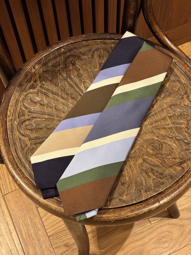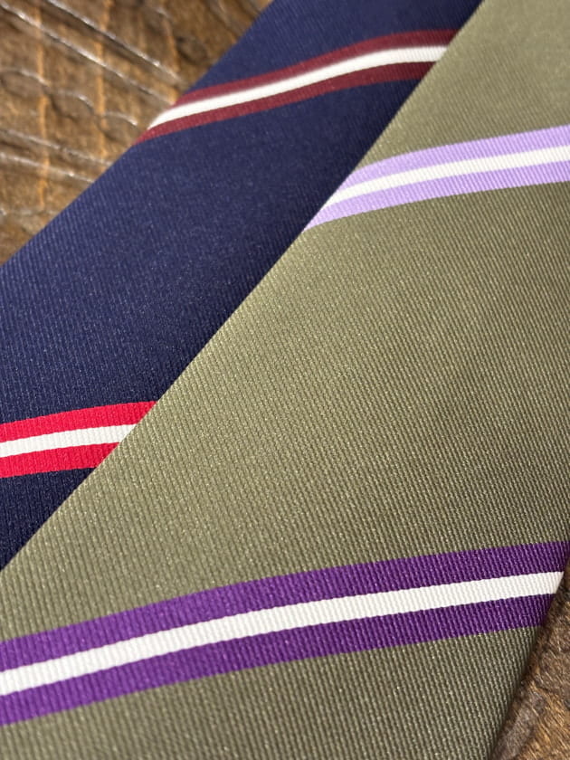 こちらも大柄のレジメンタル。<Seaward & Stearn>らしい素材感もポイントです。