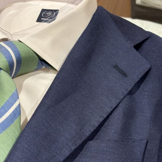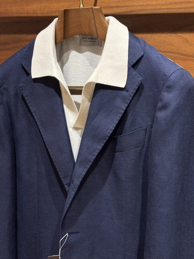 夏はこのようなコーディネートがリアルでしょうかね。ウール/リネン生地の清涼感とともにお楽しみください。