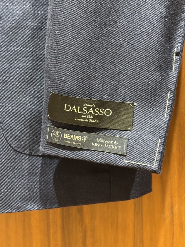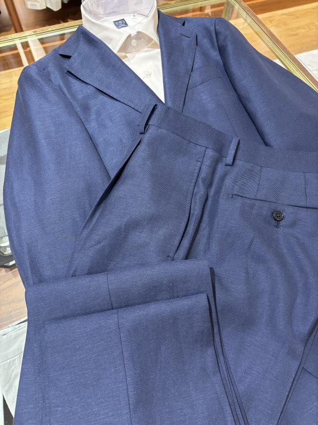イタリアの生地メーカー、DALSASSO社のウール55%リネン45%生地です。目付けは250gでサラっとしたタッチ。爽やかな印象のINDIGOカラーです。