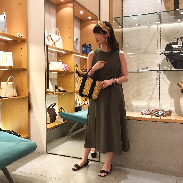 こんなシンプルスタイルのワンピースは合わせるアクセでがらっと雰囲気が変わるもの。