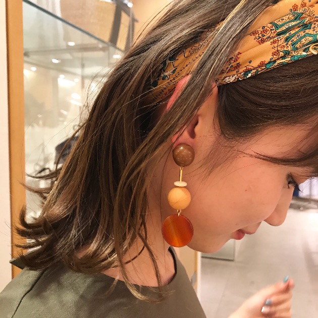 印象的なアクセが揃っているのであえてネックレスは外して引き算を。