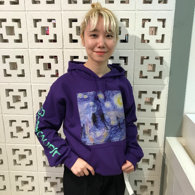「ちなみにこのパーカーもBOW WOW!洋服の背景を知ると服選びが一層面白くなるよね」