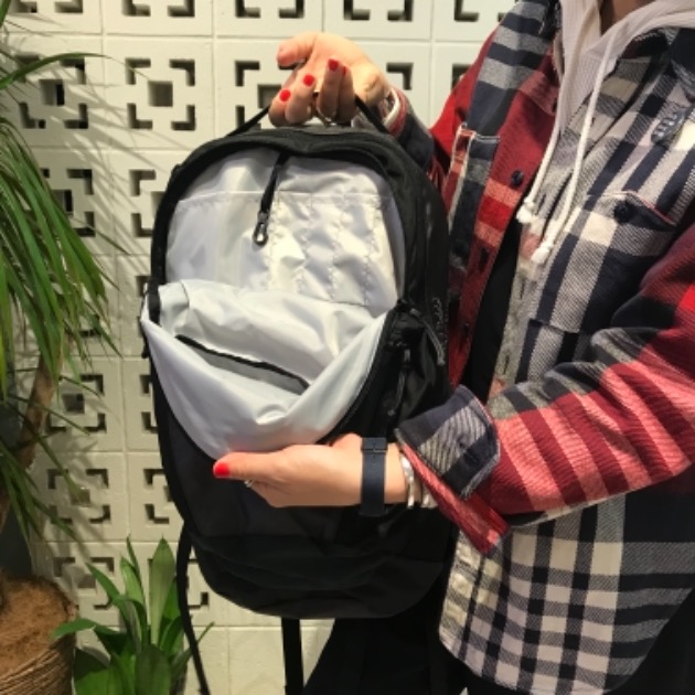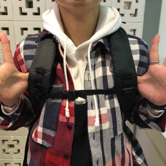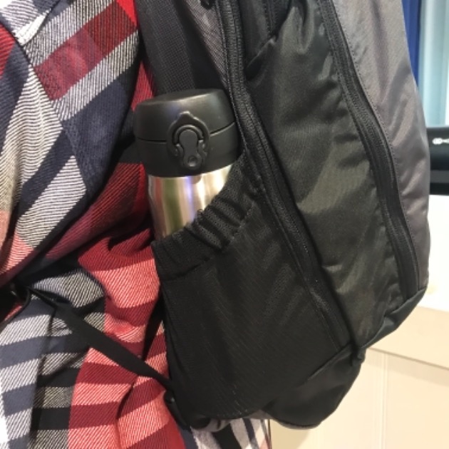 『サイドのメッシュポケット!これ大事!私って毎日水筒持ち歩くからさ〜…やっぱりサイドにポケットがあるのは嬉しいよね〜。水筒には氷を入れて、いつでも冷たい飲み物を飲めるようにしてるよッ』