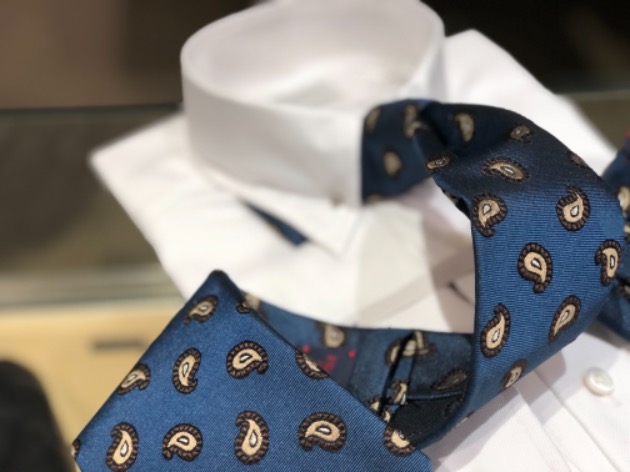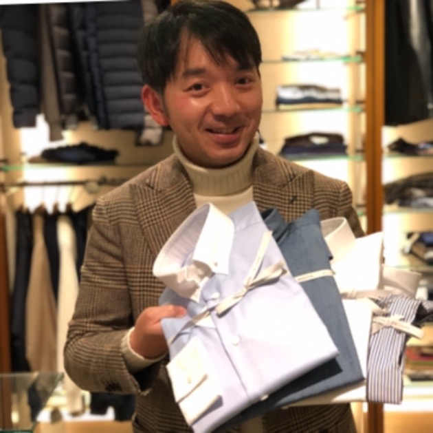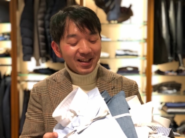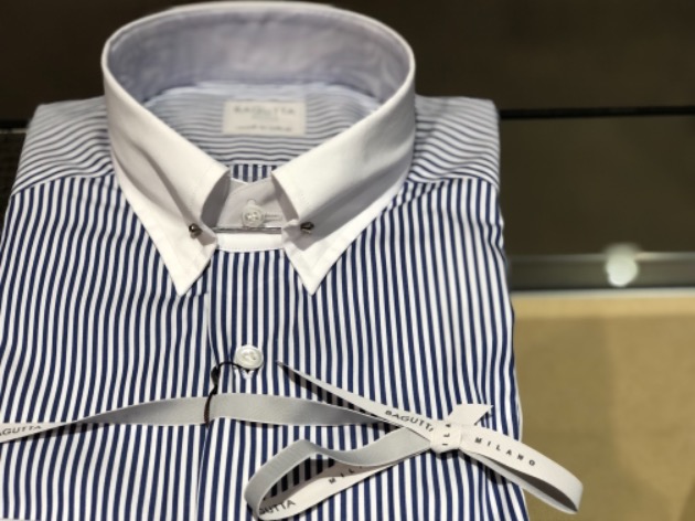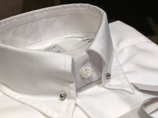 「エレガントな首元を演出するピンホールカラーシャツです。」