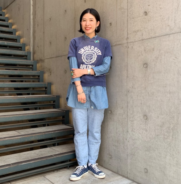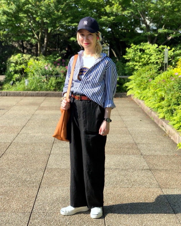 ダテさんのスタイリングは、ウエストにベルトをプラスする事で、ラフ過ぎないきちんと感を出しています。