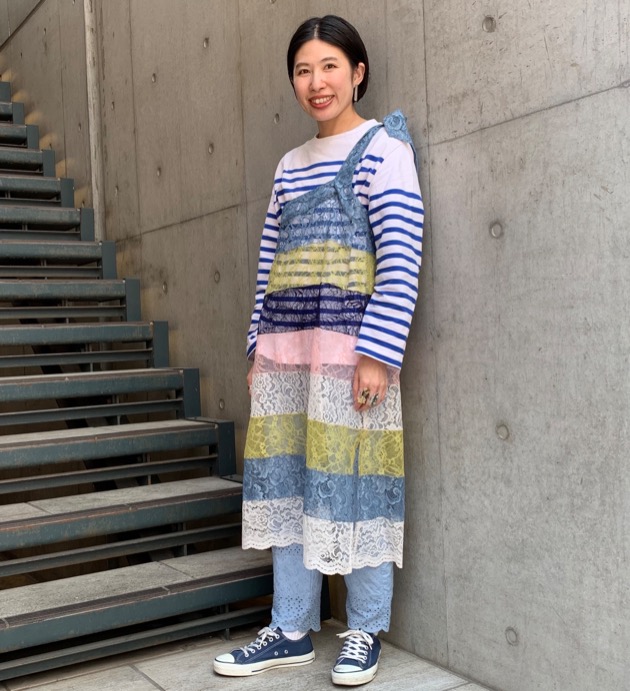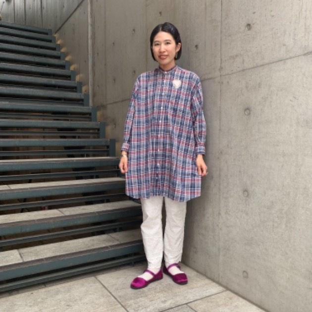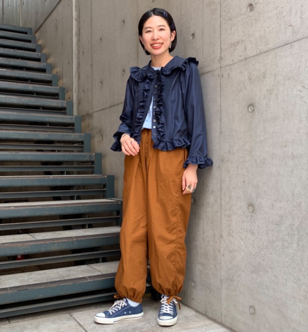フリルと合わせて少し女性らしくコーディネートしています。