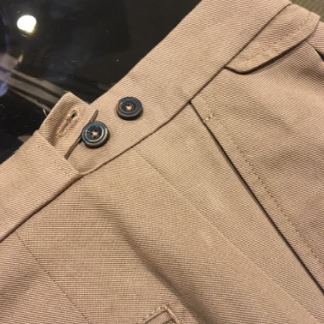 1プリーツで、ベルト通し無しのサイドアジャスタータイプです。