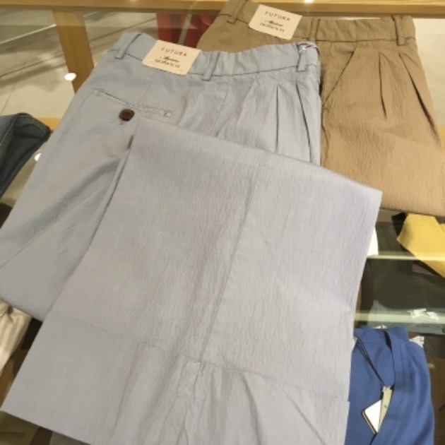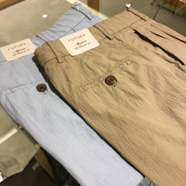 ストレッチの効いたシアサッカー生地です。季節感もあっていいですね。