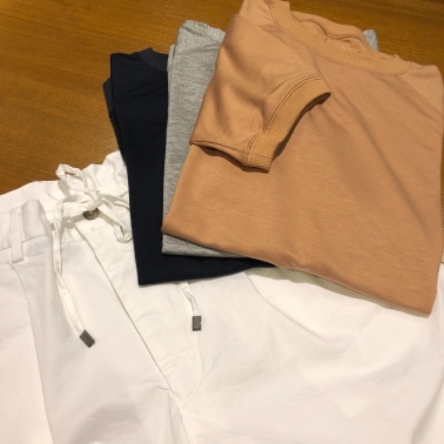 スエットタイプの形に、上品な素材をのせるミックス加減が「Brilla per il gusto」らしい演出です。