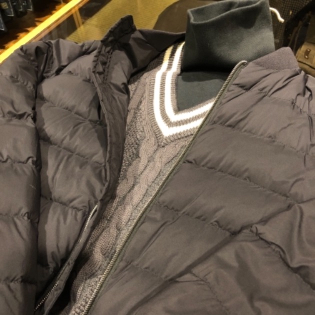 しっかりとした編み込みのニットですが、決してゴワつきはありませんので、ダウンアウターの中にも着用できます。