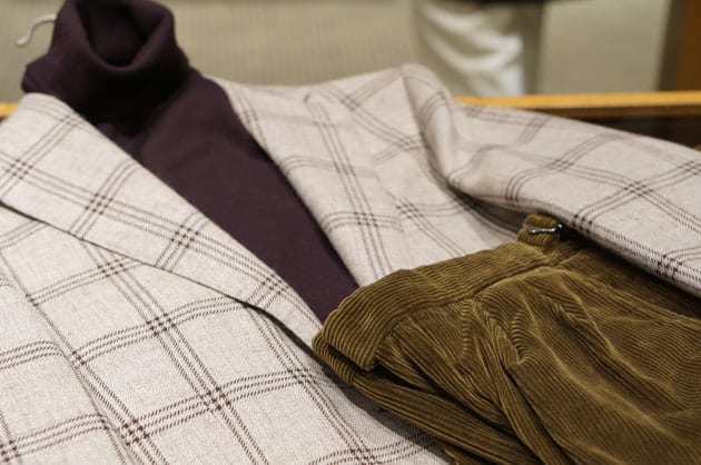 カントリー調の生地でも、綺麗なシルエットなら、土臭くならずにお召し頂けます。