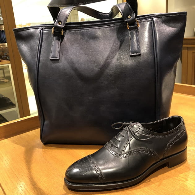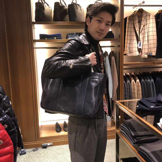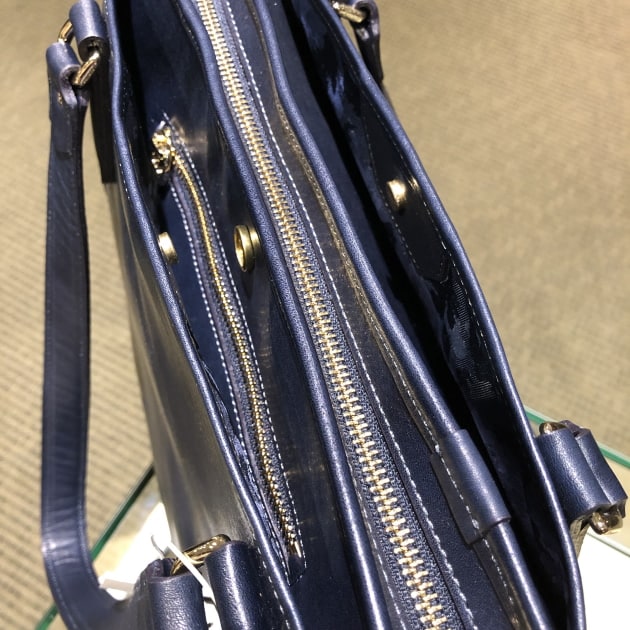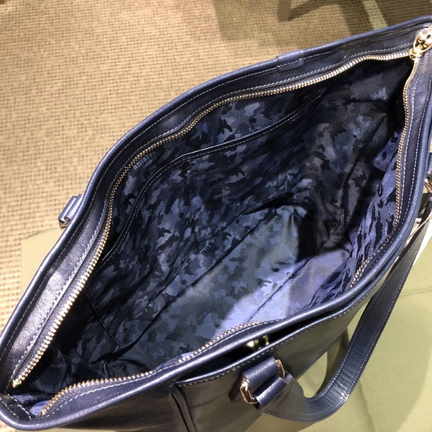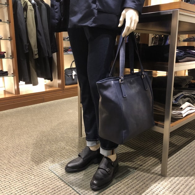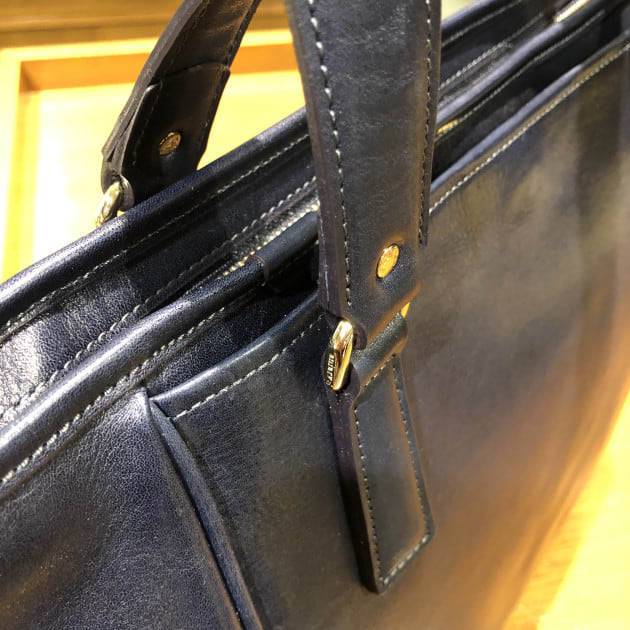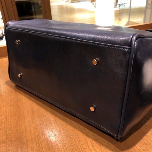 青すぎないネイビーのレザーは、黒のようにかたくなり過ぎず、しかもオンとオフでどちらも使えそうです。やはりレザーバッグの魅力は長期間使える事ですね。あとオールシーズン大丈夫ですね!
