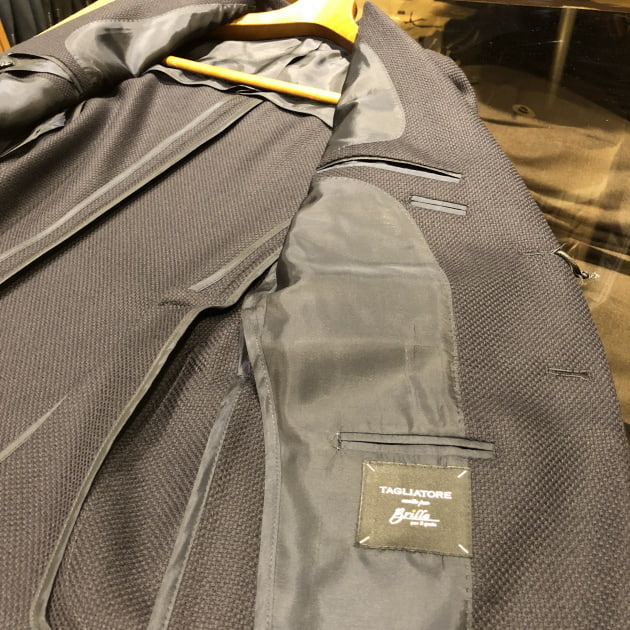 後ろ姿のこのサイドベンツのグッと深い切れ込みが〈タリアトーレ〉ならではです!