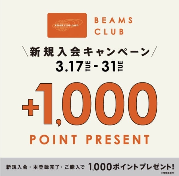 3/18〜3/23の期間でビームスクラブカードのポイントが2倍でたまるキャンペーンです。