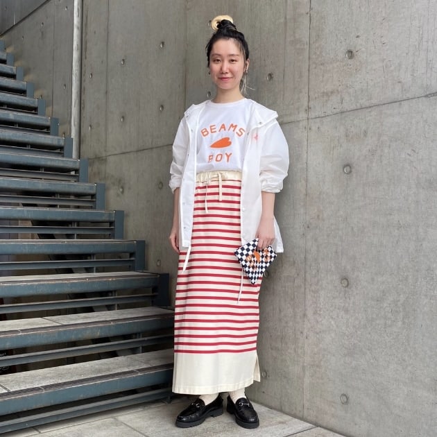 個人的にはゴリゴリのBEAMS BOY感で合わせてしまいがちなのでこういうミックスできちゃうスタイルがすごく素敵に見えます。憧れ。女性らしい!