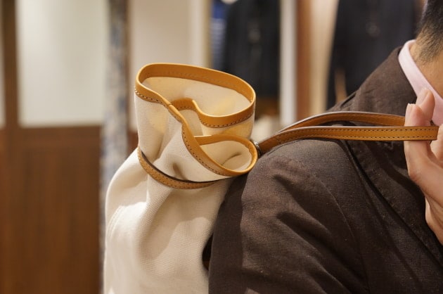 サッと肩にかけて。上質なキャンバスとレザーは使い込む程に風合いが増していきます。