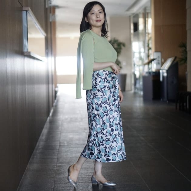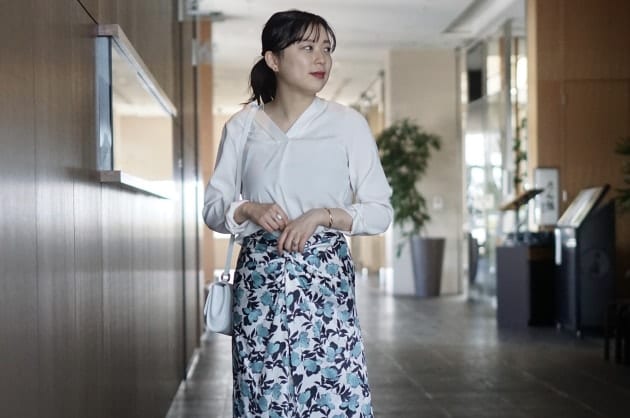 そんなブラウスと合わせると、少しオンコーデに近いスタイリングになります。華やかで爽やかな印象ですよね。