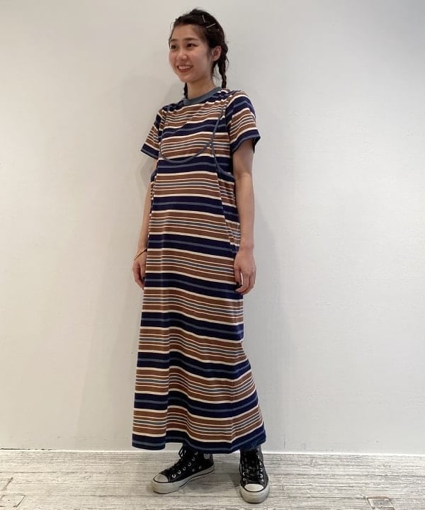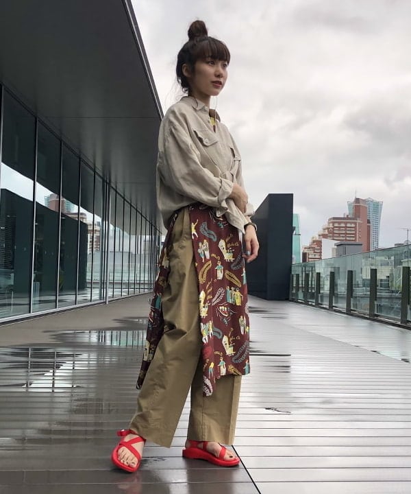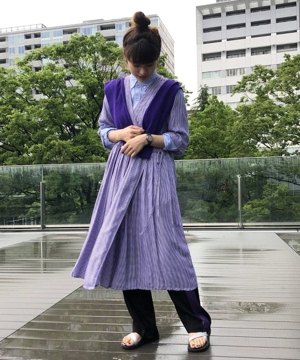 大人っぽい雰囲気のワンピースをジャージーとサンダルで外したり、