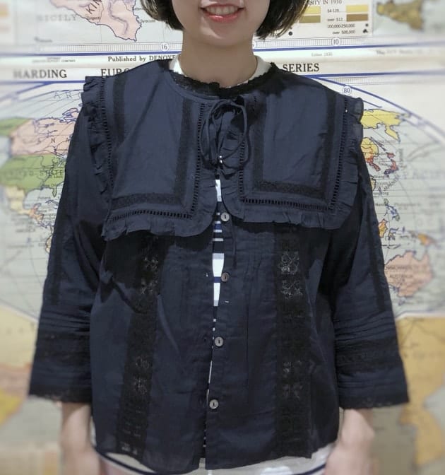 BEAMS BOY / ヴィンテージ レース デタッチカラー 7分袖 シャツ