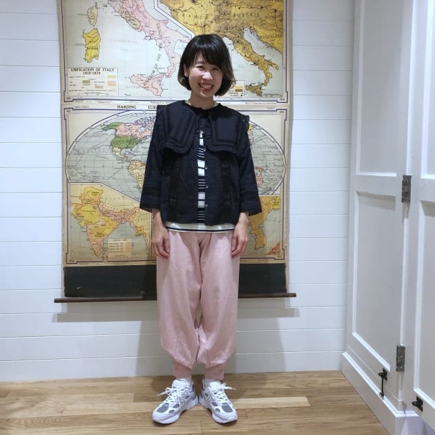 最終日は前日のbaserangeのピンクのパンツを着回し前日と違って甘いトップスを合わせました。