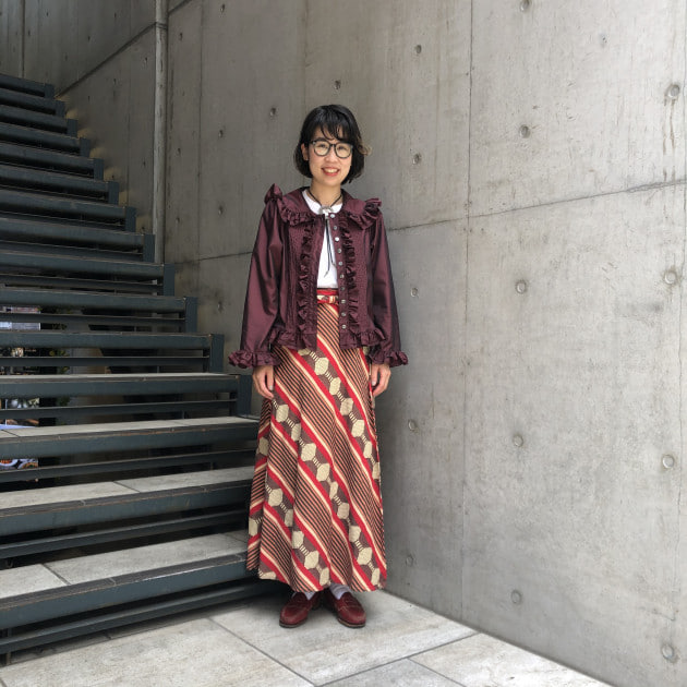 ENGINEERED GARMENTSのスカートにVermeerist BEAMSで以前オーダーしたブラウスを合わせて。