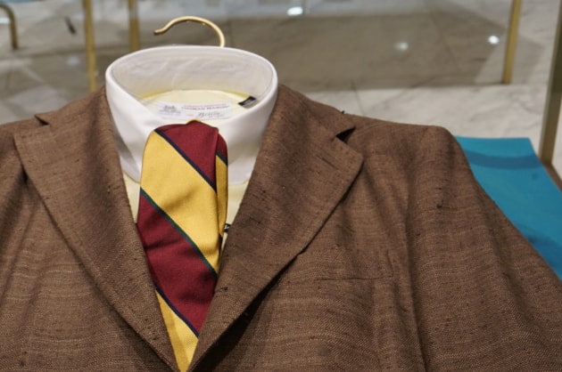 私は、ボタンダウンシャツやレジメンタルタイで、アメリカンテイストを取り入れてスタイリング。