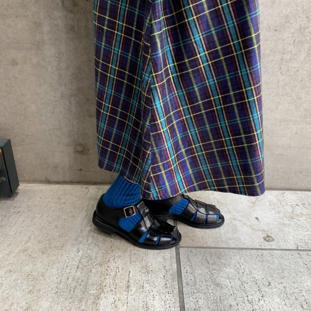 エナメルのサンダルは、上品な印象にもマッチします!!