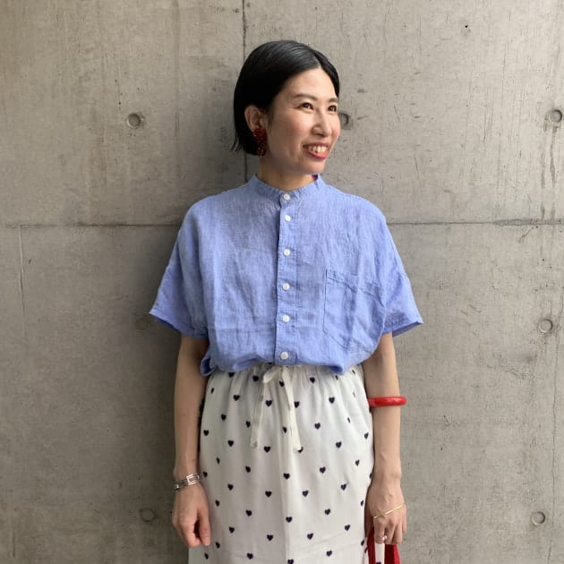 BEAMS BOY / リネン スタンドカラー ショートスリーブ シャツ
