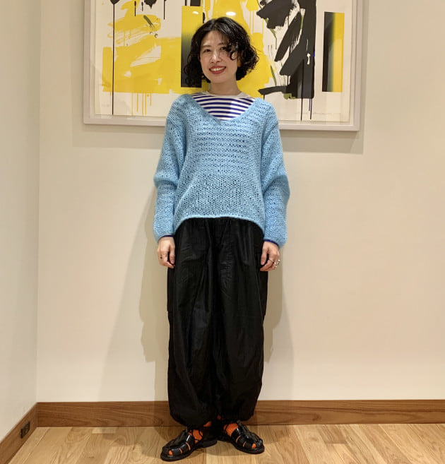 ユルッとした、モヘアニットと合わせるだけでも個性が光るコーディネートになります。
