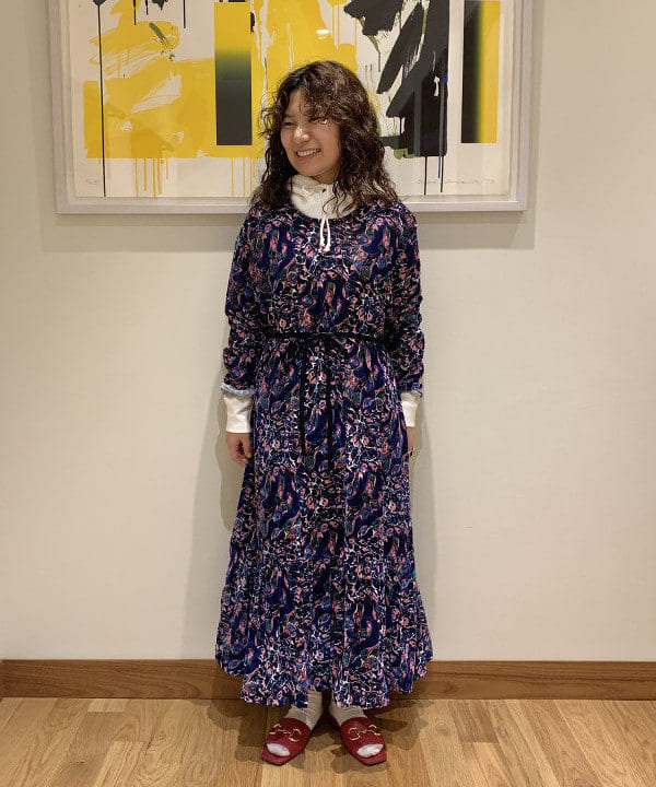 首元は、Uネックなので、インナーを変えるだけで印象も変わるワンピースです。