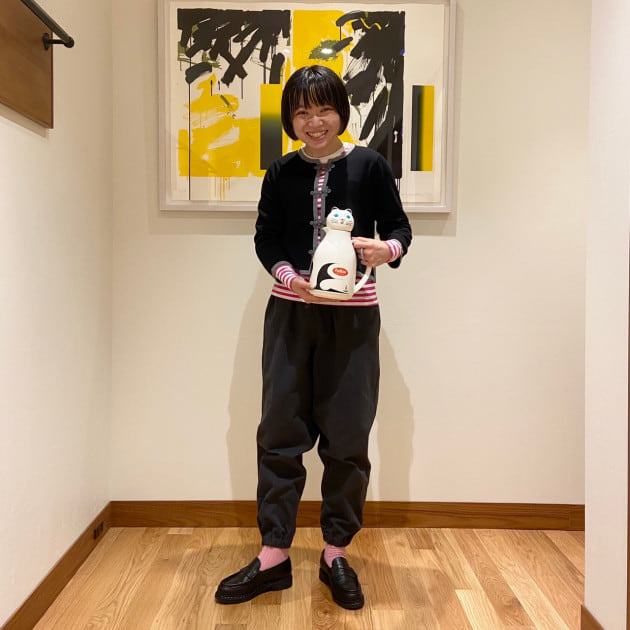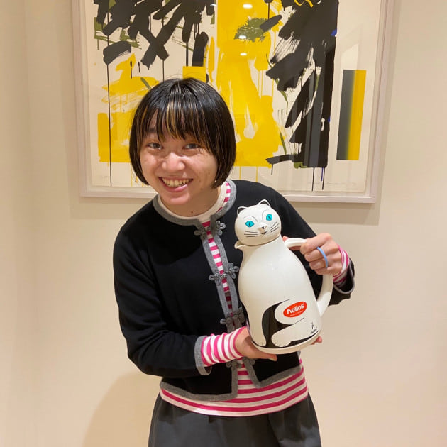 この満面の笑顔!この猫ポットも話題に上りそうですね。