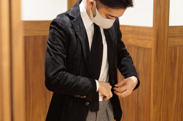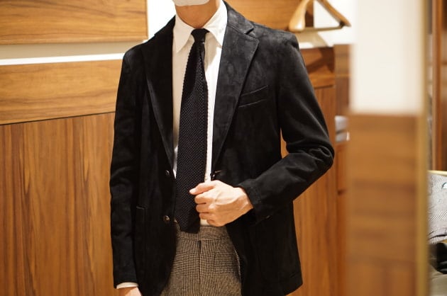 スエード素材も相まって、非常にエレガントで男らしい雰囲気です。