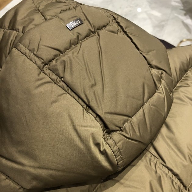 〈HERNO〉の定番素材、ナイロンシャモニーと呼ばれるマットな質感ですがわずかに鈍く光沢を感じる生地です。