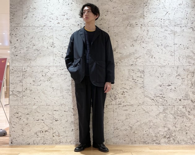 このジャケットとパンツの魅力がかなり伝わるスタイリングかもしれません。